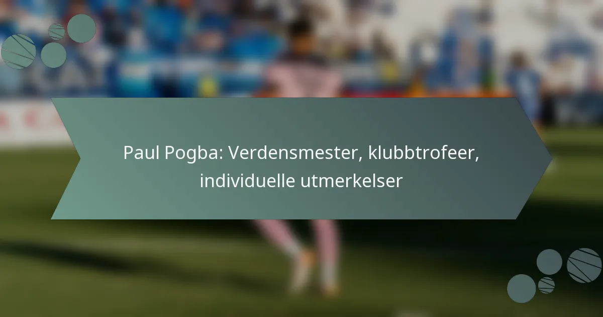 Paul Pogba feires for sine bemerkelsesverdige prestasjoner som verdensmester, der han spilte en avgjørende rolle i Frankrikes seier i FIFA verdensmesterskapet i 2018. Hans suksessfulle klubbkarriere inkluderer en rekke trofeer med Manchester United og Juventus, noe som understreker hans betydelige innvirkning på lagene han har representert. I tillegg har Pogba mottatt ulike individuelle utmerkelser, som bekrefter hans talent og styrker hans arv i fotballens verden.